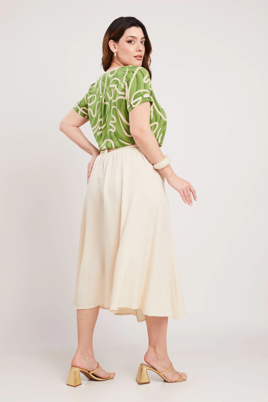 Apresentamos a Blusa Estampado Viés Bicolor Verde — a blusa que é tão estilosa que até sua sombra vai querer usar!